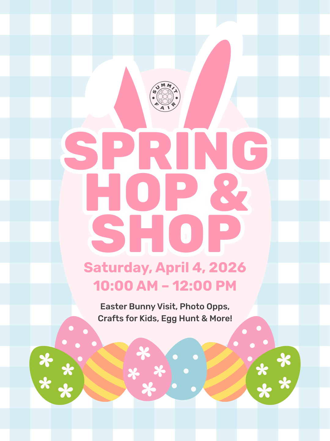 You’re Invited: Summit Fair Hop & ShopSaturday, April 4 | 10:00 AM – 12:00 PM Spring starts here at Summit Fair! Join us for our official spring launch celebration, a...